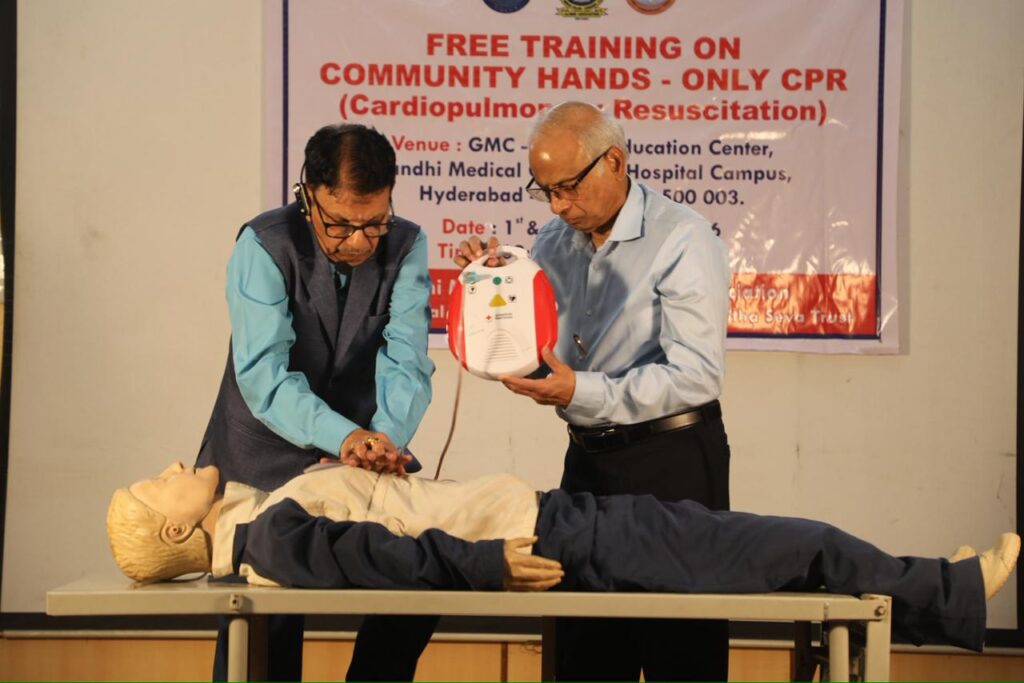 Former Minister and Sanathnagar MLA Talasani Srinivas Yadav stated that people’s health is in their own hands. He attended as the chief guest and inaugurated a two-day CPR training programme organised by the Gandhi Medical College Alumni Association and Janahitha Seva Trust on Sunday at the Gandhi Medical College campus.