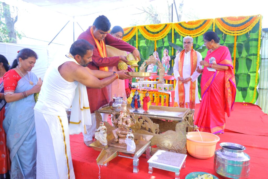 From the early morning, devotees started arriving at the venue to witness the auspicious ceremony. The entire premises of Savithri Gardens was beautifully decorated with flowers, traditional décor, and elegant arrangements, enhancing the spiritual essence of the event. The spacious and well-maintained venue at Channa Reddy Enclave provided a peaceful and comfortable setting for all attendees.