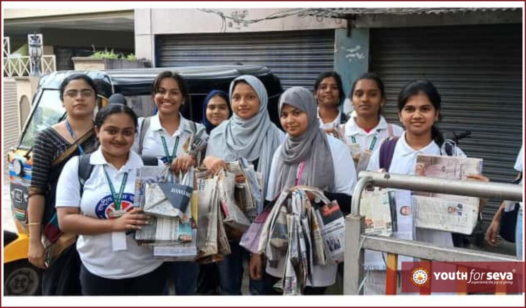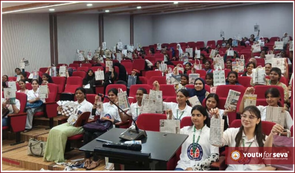 Youth for Seva | Paper Bag Making & Plastic Awareness Drive at St. Ann’s College for Women, Mehdipatnam 8 October, 2025