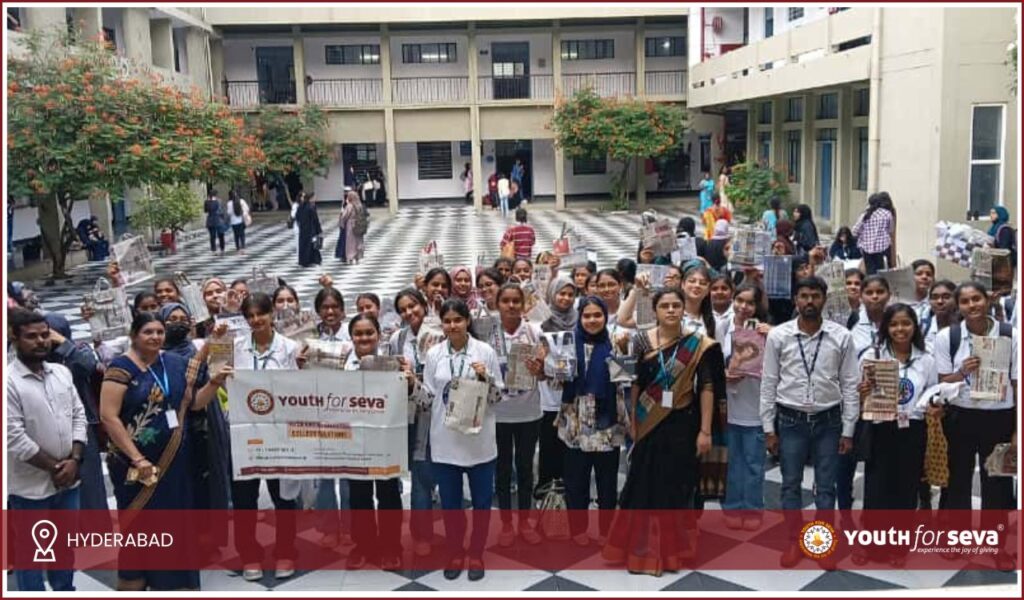 As part of the Environmental Training and Plastic Awareness Initiative, the Hyderabad College Relations Team of Youth for Seva organized an inspiring Paper Bag Making Activity at St. Ann’s College for Women, Mehdipatnam.