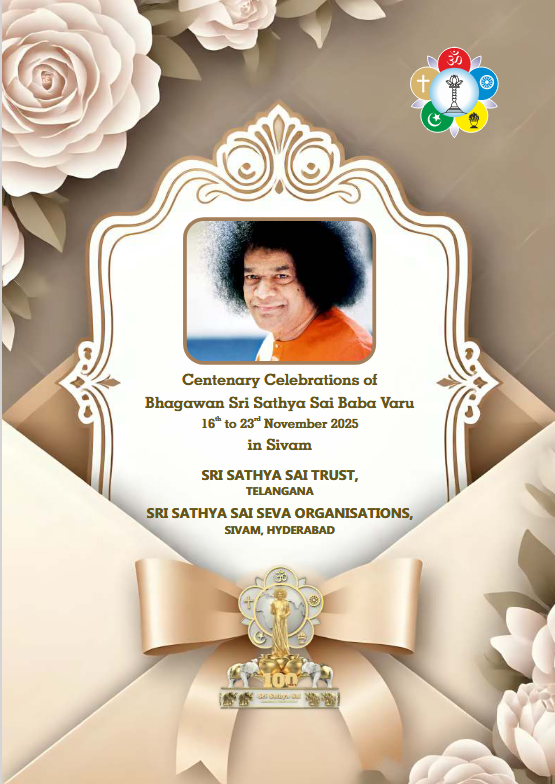The Sri Sathya Sai Trust, Telangana and Sri Sathya Sai Seva Organisations, Sivam, Hyderabad lovingly invite all devotees to the Eight Glorious Days of Divine Celebrations commemorating the 100th Year (Shatabdi) of Bhagawan Sri Sathya Sai Baba Varu.
