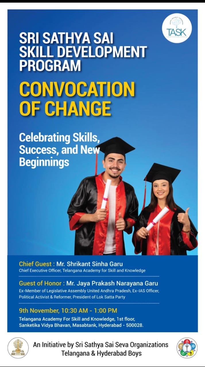 We are excited to invite you to the Convocation Ceremony of the Sri Sathya Sai Skill Development Program’s Batch 2 Students. This special event marks a significant milestone in the journey of empowering youth through valuable skills, and we’d love for you to join us as we celebrate their achievements!