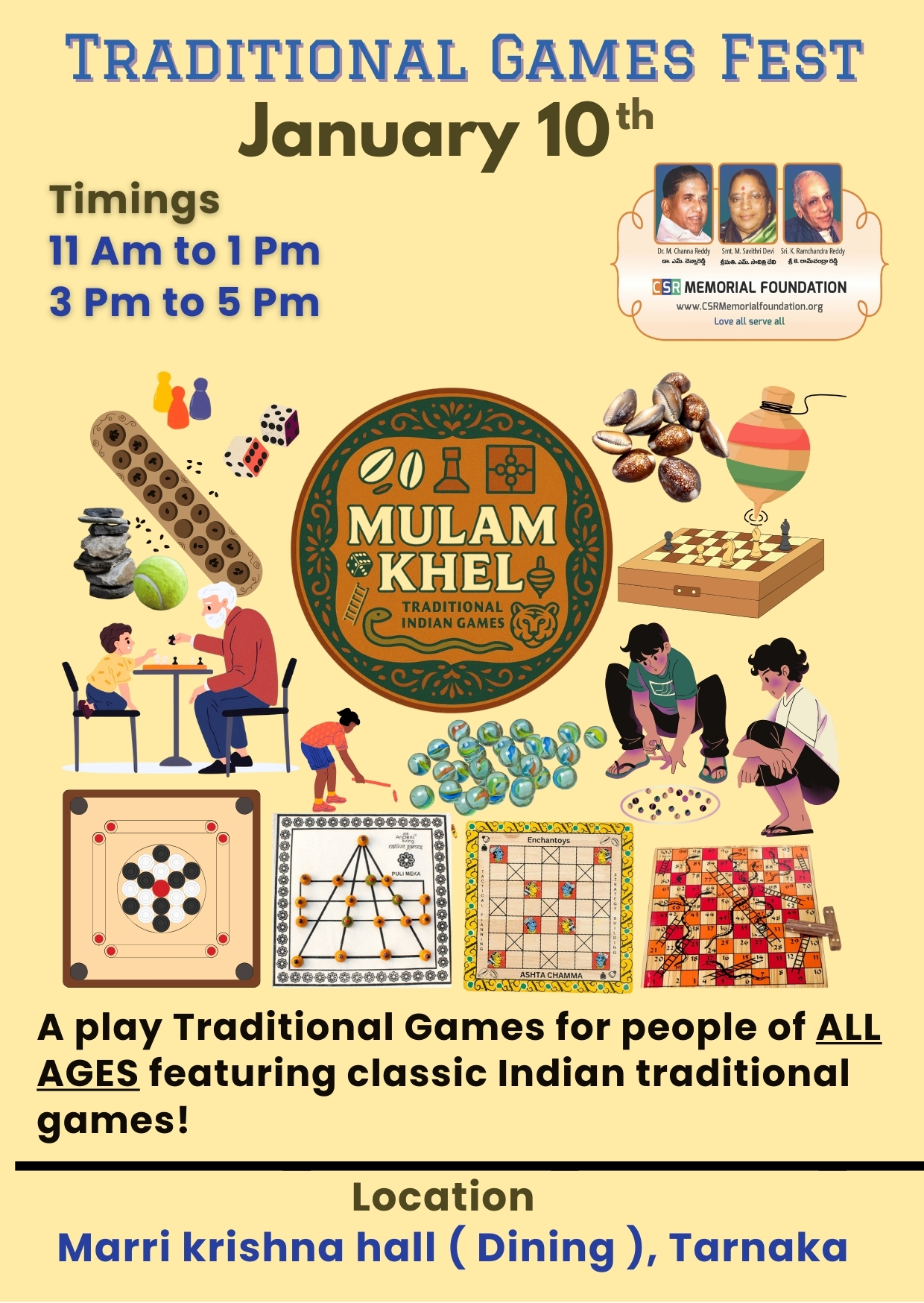 This festival invites children, youth, adults, and elders to reconnect with classic Indian games that promote skill, strategy, bonding, and cultural pride.