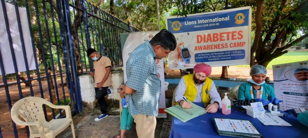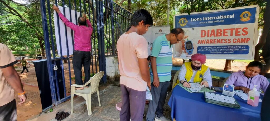Lions Club International, in collaboration with Renova Nigl Hospitals, is proud to announce the successful completion of the Free Diabetic Health Camp held on November 1st, 2025, at Indira Park from 6:00 AM to 9:00 AM.